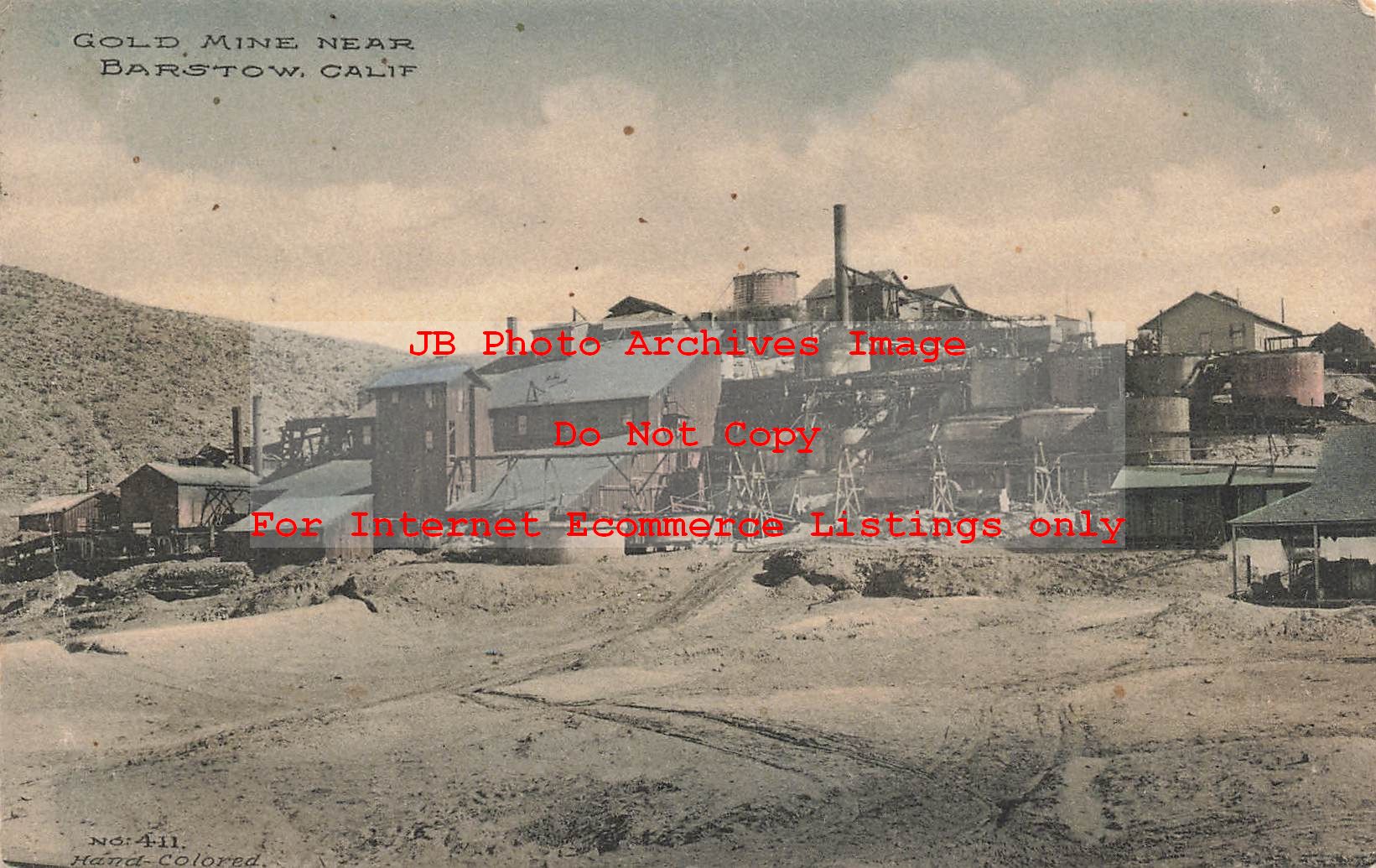 This is a nice vintage early printed hand colored postcard showing a gold mine near Barstow, California.