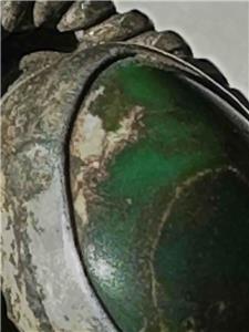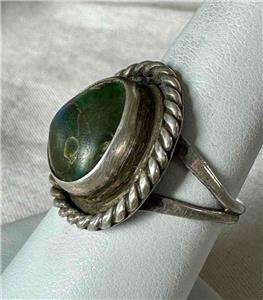 Fred Harvey Era Irregular Shape Greasy Green Turquoise & Sterling Ring  6.75 - Additional view 6