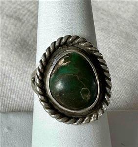 Fred Harvey Era Irregular Shape Greasy Green Turquoise & Sterling Ring 6.75