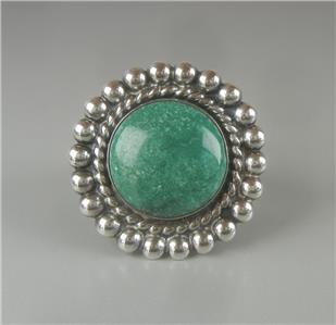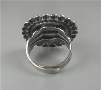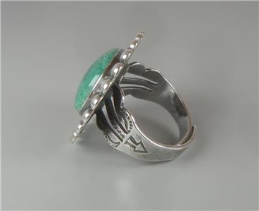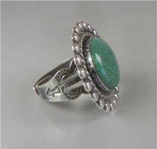 Fred Harvey Era Ring Sterling Silver Turquoise 1″ Wide Setting Adjustable Sz 7.5