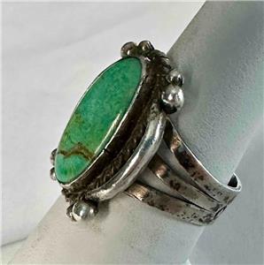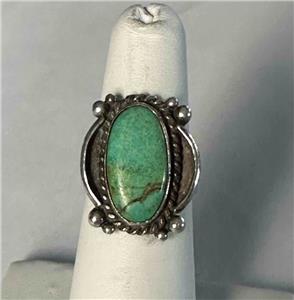 Fred Harvey Era Southwest  Sterling Silver & Oval Green Turquoise Ring  Sz 5.75