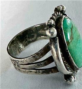 Fred Harvey Era Southwest  Sterling Silver & Oval Green Turquoise Ring  Sz 5.75 - Additional view 10