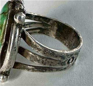 Fred Harvey Era Southwest  Sterling Silver & Oval Green Turquoise Ring  Sz 5.75 - Additional view 9