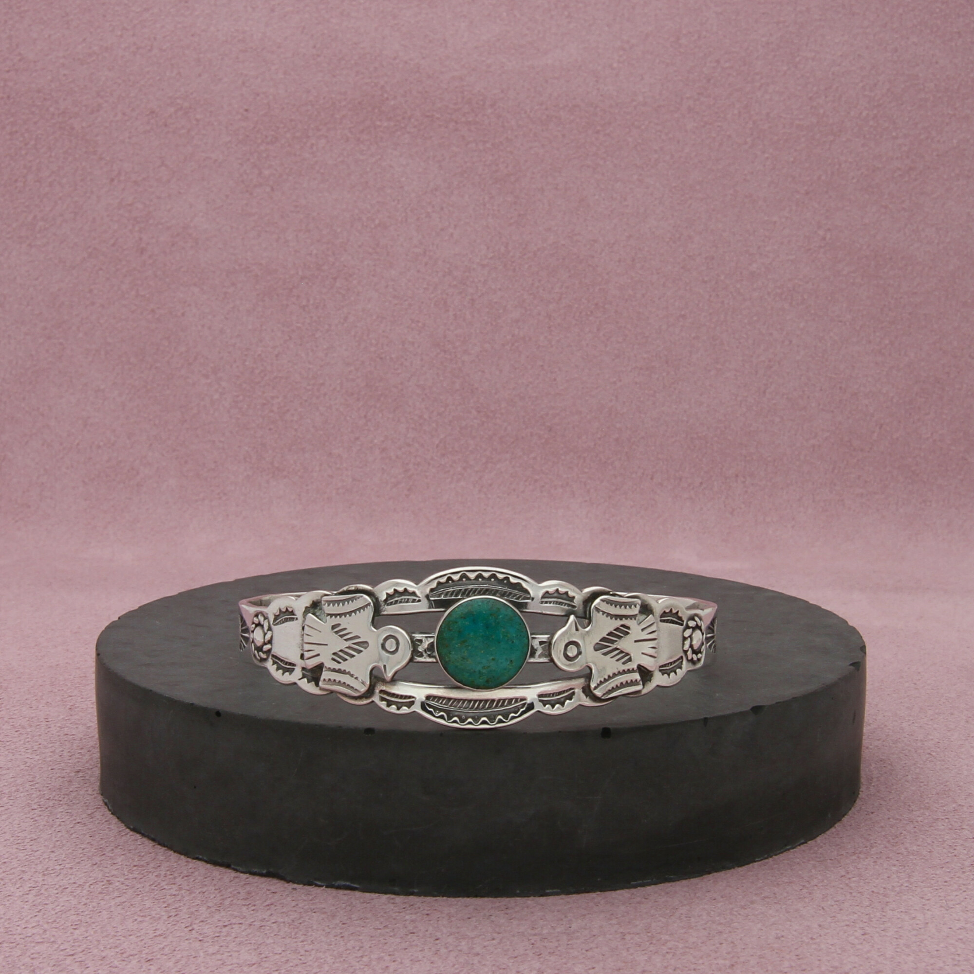 fred harvey era sterling silver turquoise thunderbird cuff bracelet size 5.75in