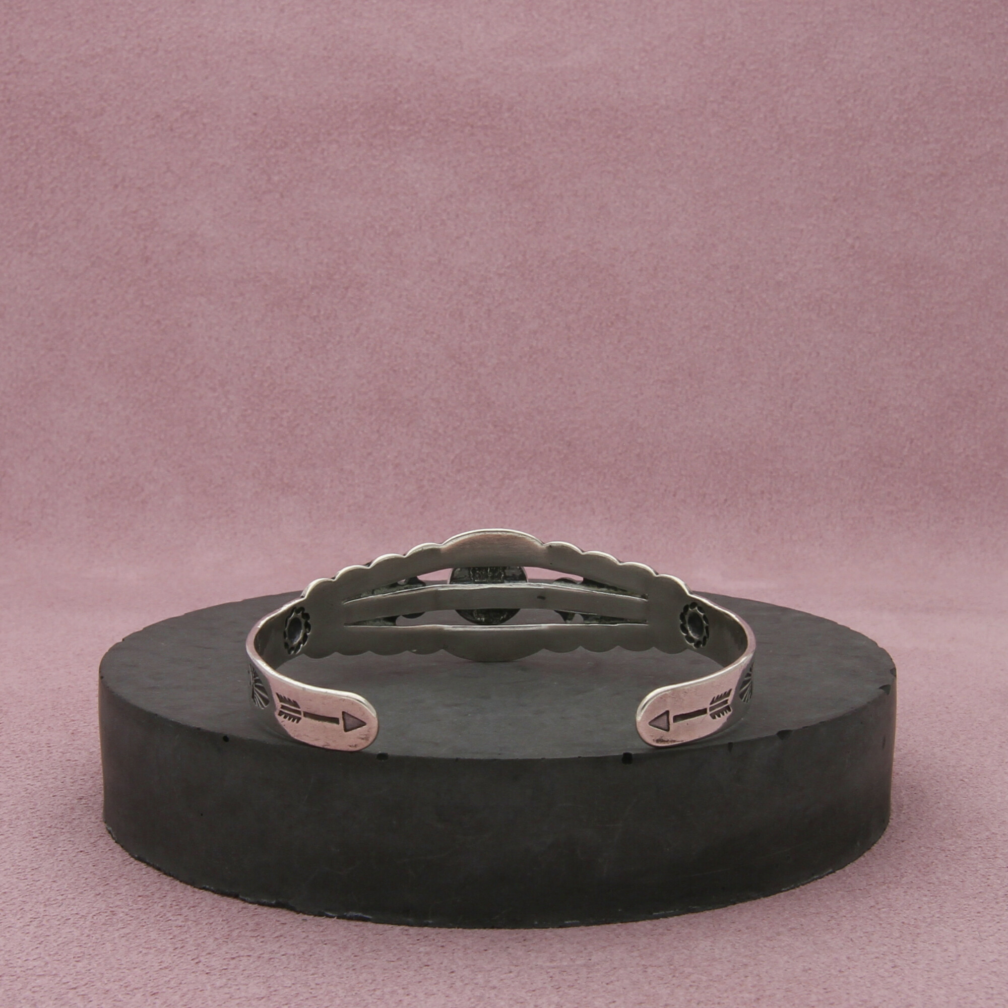 fred harvey era sterling silver turquoise thunderbird cuff bracelet size 5.75in
