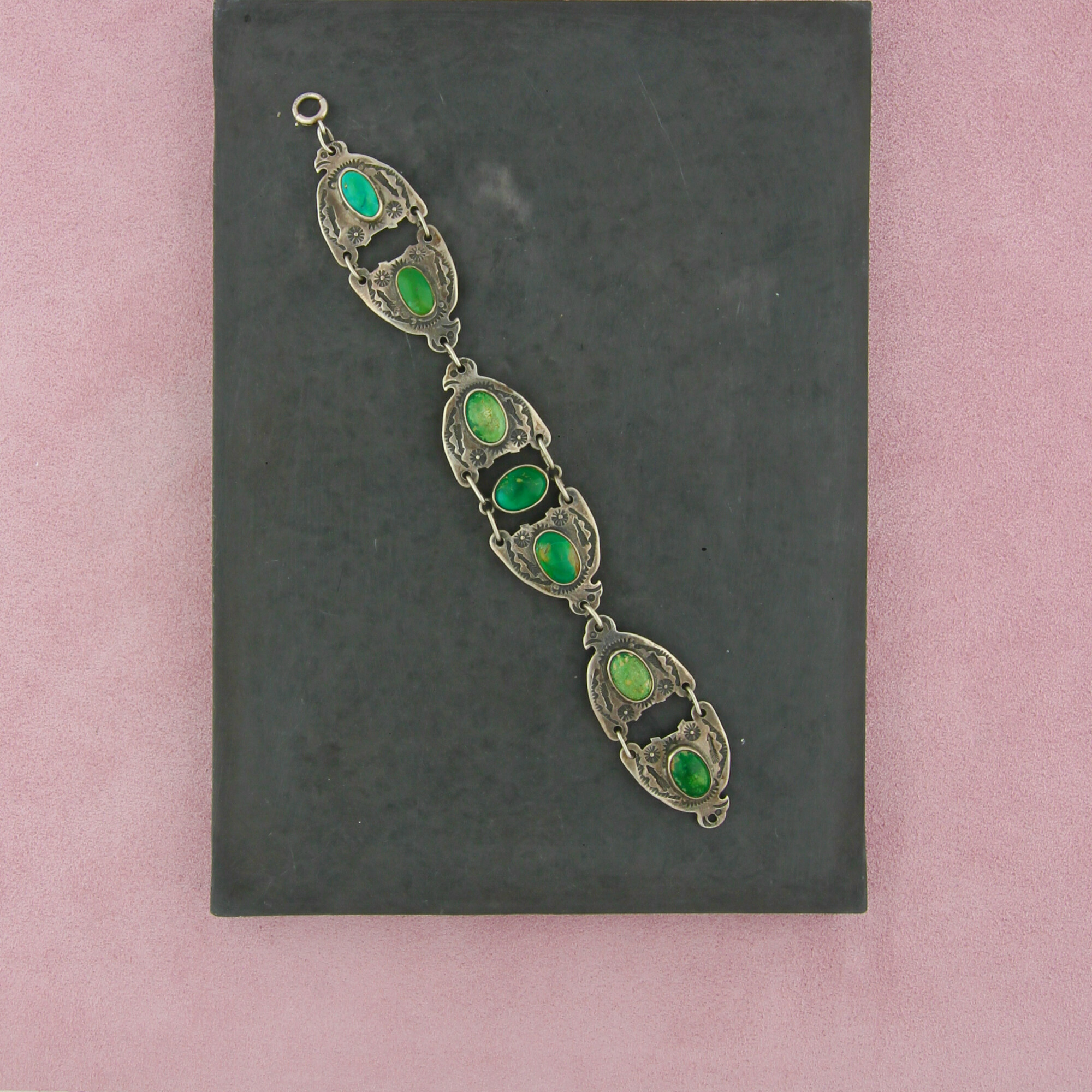 fred harvey era sterling silver vintage turquoise thunderbird bracelet 7.5in