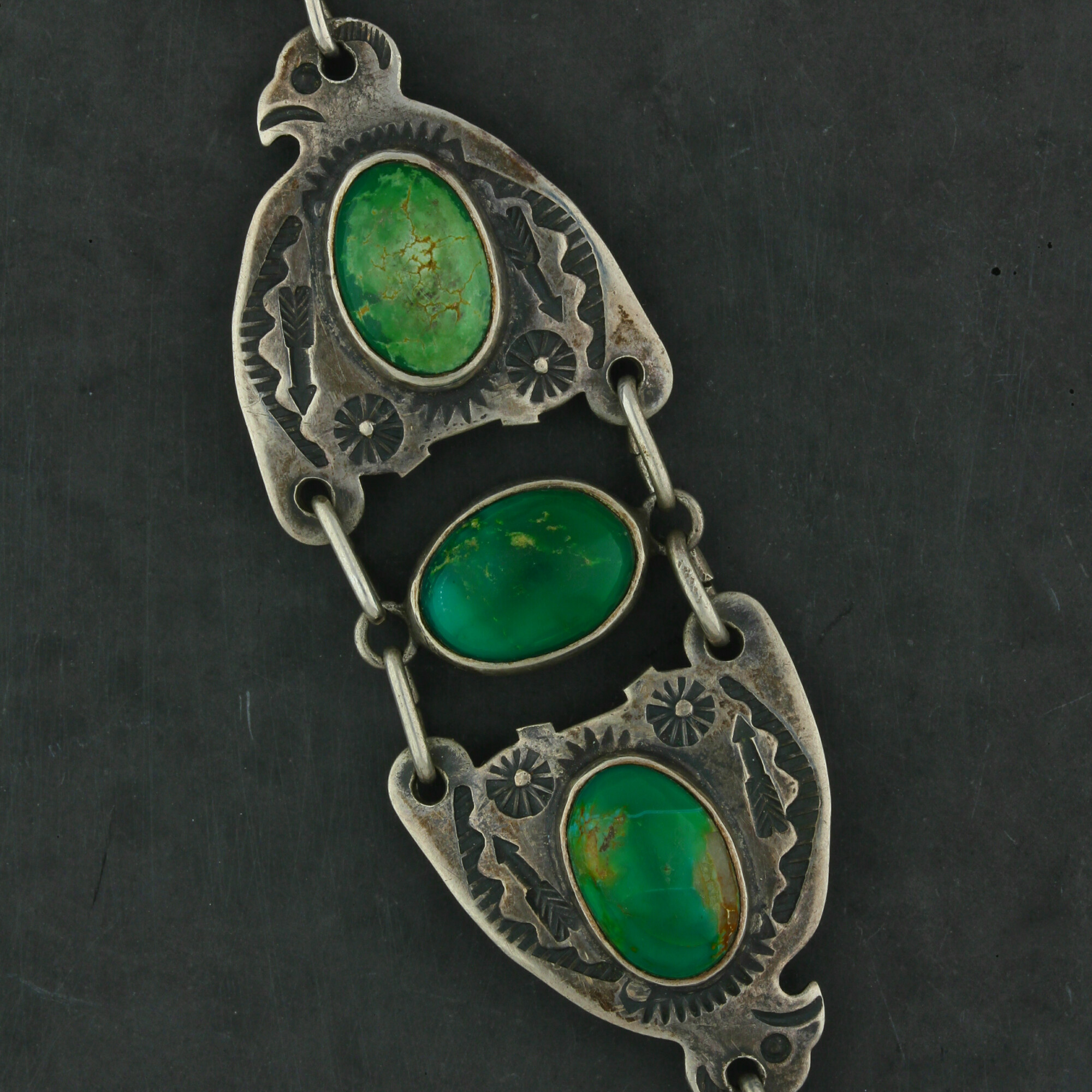 fred harvey era sterling silver vintage turquoise thunderbird bracelet 7.5in