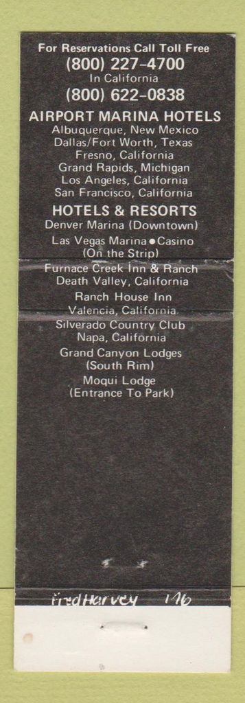 Matchbook Cover – Fred Harvey Locations