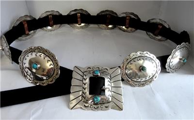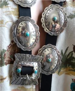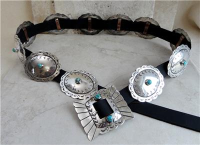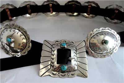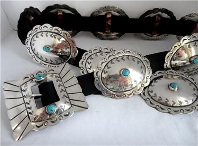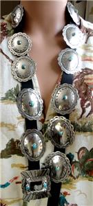 VINTAGE NAVAJO CONCHO BELT STERLING TURQUOISE FRED HARVEY ERA EARLY 1900’s 275g