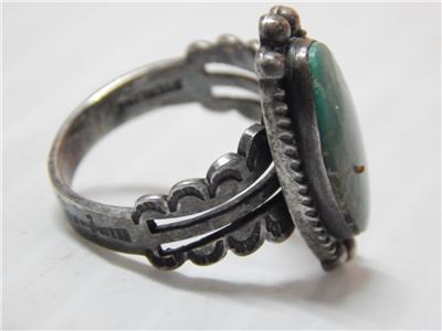 VINTAGE NAVAJO INDIAN 1930s FRED HARVEY STERLING SILVER TURQUOISE RING SZ: 4 3/4